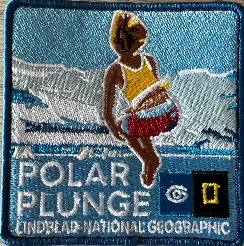 The group of us waiting for the polar plunge laugh and talk nervously, shivering barefooted, not sure exactly what throwing ourselves into 34 degree water peppered with pieces of ice and icebergs will feel like.  About half the ship’s passengers are doing the polar plunge today, including a gutsy 12-year-old girl and quite a few elderly folks.